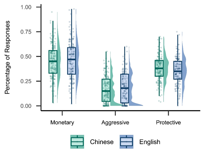 This study is the first to examine the impact of language contexts on reactive aggressive behavior. The results show that participants exhibited a moderate level of aggression, and they were more inclined to pursue and protect gains rather than engage in costly aggressive behavior. This behavioral pattern was weakened in foreign language contexts. Specifically, in the foreign language (English) context, participants pressed the “aggressive button (which deducts points)” significantly more frequently than in the native language (Chinese) context. This increase in aggressive behavior is likely because foreign language contexts reduce the restrictive effect of social norms on behavior. Compared with using one’s native language, using a foreign language may evoke fewer memories related to prohibitions or social constraints, making it easier for individuals to break through normative limits. In addition, the “point-deduction aggression paradigm” adopted in this study requires participants to pay a cost for aggressive behavior – that is, losing the opportunity to increase their points. Therefore, there may be another reason behind the study’s results: compared with the native language context, foreign language contexts weaken the negative emotions triggered by the costs of aggressive behavior, thereby leading to an increase in retaliatory behavior that requires paying a cost. These two explanations are not mutually exclusive but complementary. Together, they confirm a widely discussed hypothesis in academic circles: compared with one’s native language, a foreign language changes human cognition and behavior by increasing psychological distance and weakening emotional resonance.