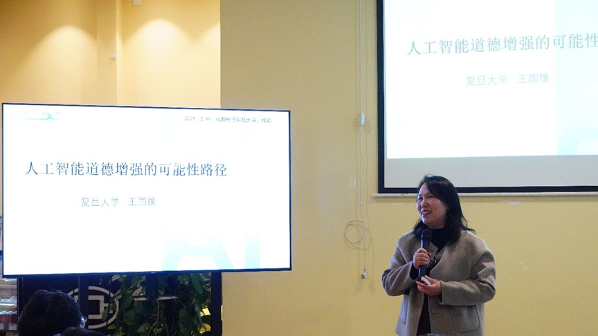 In the Q&A session, teachers and students on-site discussed topics including the relationship between traditional ethics and moral enhancement technologies, resolving ethical conflicts in AI moral decision-making, ethical issues of AI products, responsibility attribution, and moral standards. Professor Wang responded to each question, clarified the essential differences between AI moral enhancement and biotechnological enhancement, and pointed out that ethical conflicts need to be resolved through value-sensitive design. She also stressed that algorithms should be regulated and enterprises must fulfill ethical responsibilities, and reaffirmed that humans must retain the final decision-making power when using AI.